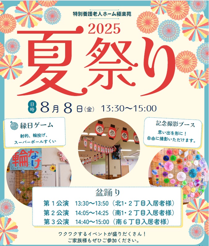 令和7年8月8日(金)、極楽苑にて恒例の「夏祭り」を開催いたしました。